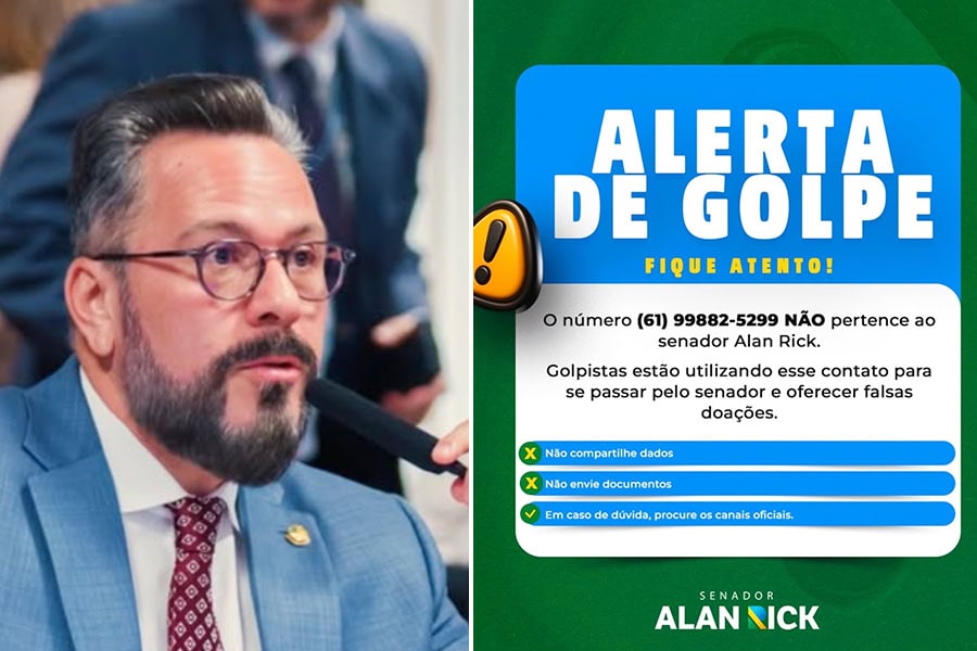 O senador pelo Acre Alan Rick (Republicanos) emitiu um alerta nas redes sociais, neste sábado (28), sobre um esquema de golpe em que criminosos utilizam um número de telefone falso para se passar por ele e oferecer doações inexistentes à população. Em publicação no Instagram, o parlamentar informou que o número (61) 99882-5299 não lhe […]