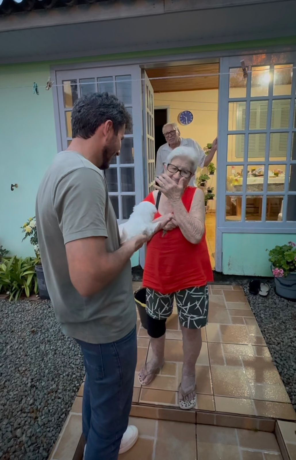 Vídeo de neto presenteando avó com cachorrinho emociona e viraliza nas redes sociais
