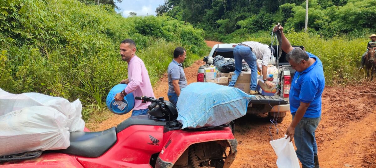 Para garantir que os alimentos chegassem até os alunos, foi preciso montar uma logística especial. As entregas foram feitas com caminhonetes e, em alguns trechos onde os veículos não conseguiam passar, o transporte continuou com o uso de triciclos.
