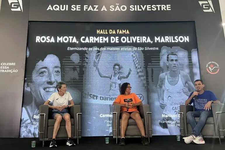 Os atletas Rosa Mota, de Portugal, e Marilson dos Santos e Carmem de Oliveira, do Brasil, que fizeram história na corrida de rua, eternizaram hoje (29) as marcas de seus pés no Hall da Fama da corrida internacional de São Silvestre. A cerimônia ocorreu na Expo São Silvestre, que ocorre no Pavilhão das Culturas Brasileiras, no Parque Ibirapuera, em São Paulo.