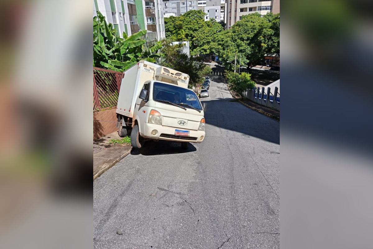 Belo Horizonte – O motorista de um caminhão leve chamou os bombeiros nesta segunda-feira (23/3) após não conseguir subir uma rua íngreme na capital mineira. Ele voltou de ré depois de não conseguir subir a ladeira e acabou preso na lateral da rua e com uma das rodas suspensa.