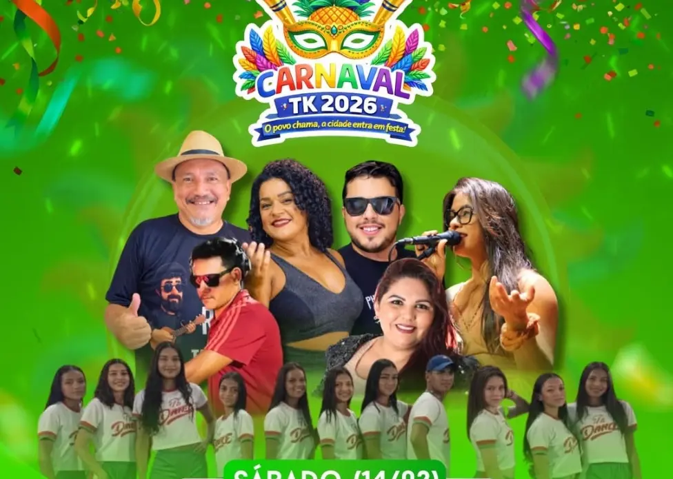 O Carnaval TK 2026 será realizado de 14 a 17 de fevereiro, na Praça Municipal Alton Furtado, em Tarauacá, com quatro noites de programação que incluem shows musicais, apresentações de dança, bailes infantis e DJs. A abertura, no sábado (14), contará com shows da Banda Sapekada a partir das 21h, Cia de Dança TK Dance, […]