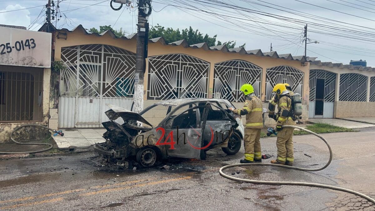 Uma equipe do 1° Batalhão do Corpo de Bombeiros Militar do Acre foi acionada e se deslocou até o endereço para atender a ocorrência. Quando os militares chegaram, o carro já estava completamente em chamas.