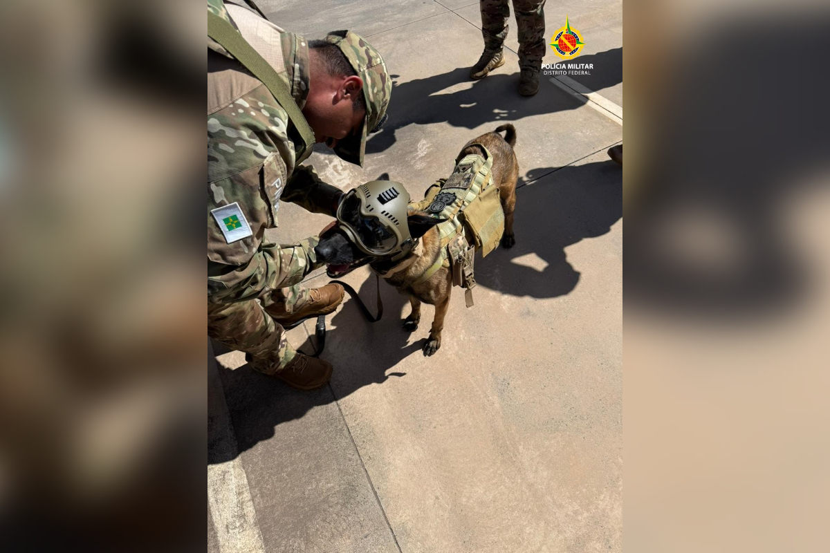 Uma operação que investigava a presença de um possível artefato explosivo chamou a atenção de quem passava pela Esplanada dos Ministérios na tarde desta quarta-feira (25/3). Além da mobilização policial, outro detalhe roubou a cena, o cão Blaster, da Polícia Militar do Distrito Federal (PMDF) atuava usando um capacete de proteção.