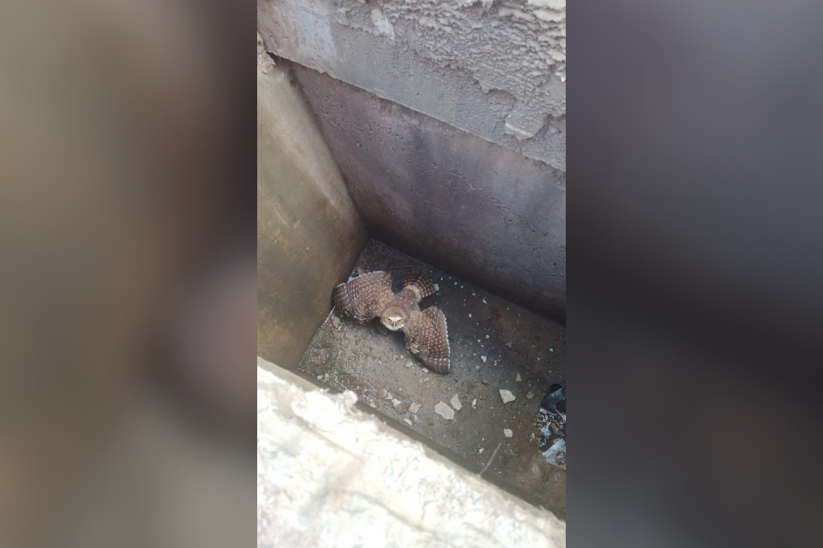 Belo Horizonte – Uma coruja foi resgatada de um bueiro por militares do Corpo de Bombeiros da cidade de Bocaiúva, localizada no Norte de Minas.