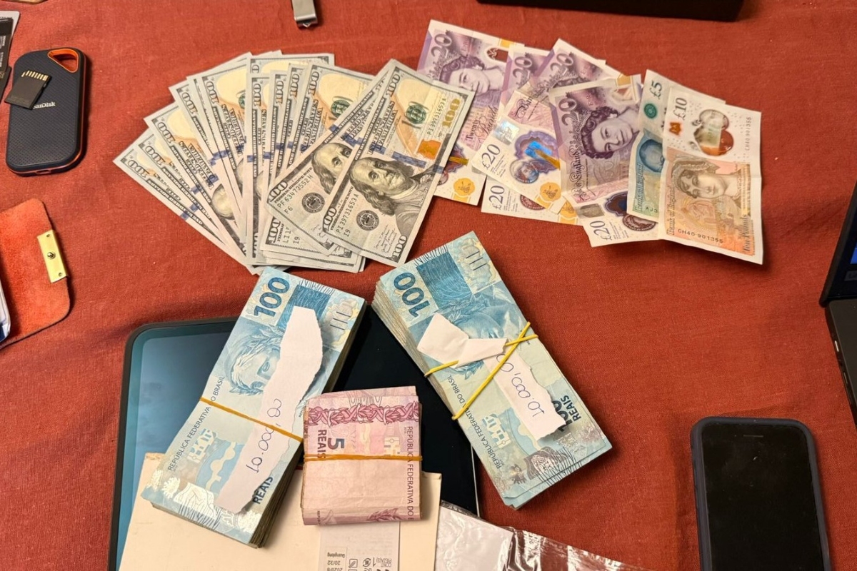 Imagem colorida de dinheiro apreendido em operação. Metrópoles