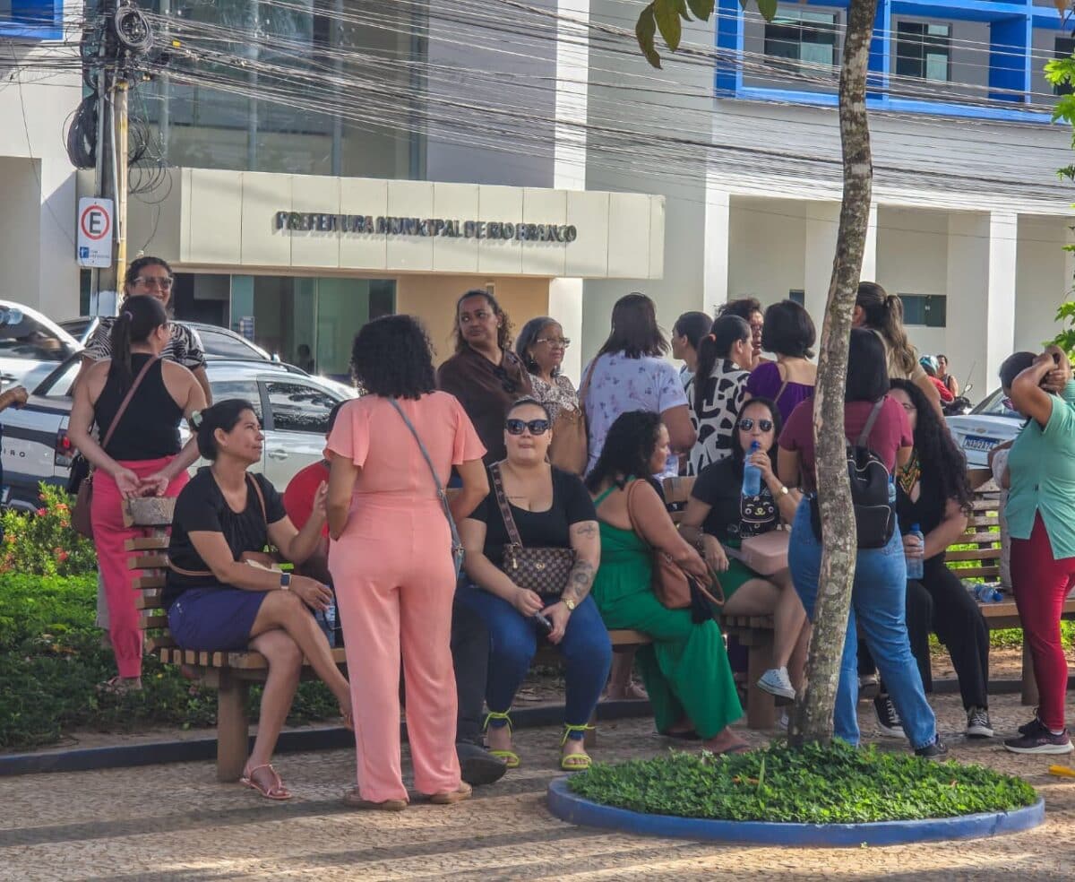 Servidores municipais de educação de Rio Branco realizam, nesta terça-feira (17), uma assembleia em frente à Prefeitura da capital, na Praça da Revolução, no Centro da cidade. A paralisação ocorre em meio a uma disputa por reajuste salarial e pelo repasse do Fundeb dos anos de 2024, 2025 e 2026, que, segundo o sindicato, não foi repassado à categoria pelo Executivo Municipal.
