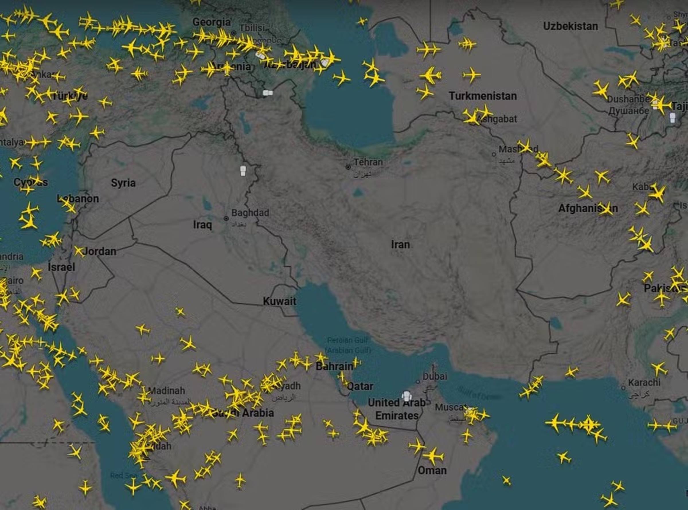 Apenas neste domingo (1º/3), pelo menos 2.800 voos foram cancelados. O espaço aéreo foi fechado em países estratégicos como Israel, Catar, Síria, Irã, Iraque, Kuwait, Bahrein, Omã e Emirados Árabes Unidos.