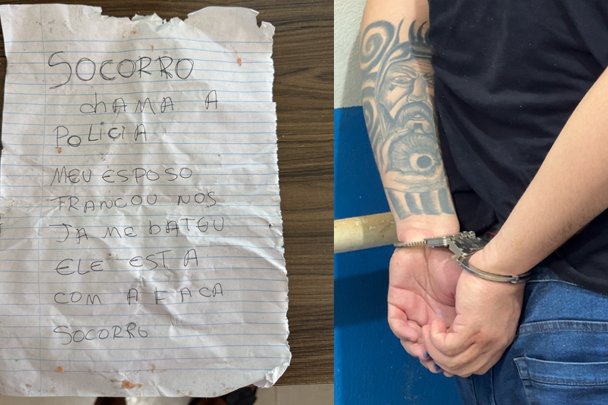 No local, os militares encontraram um bilhete com um pedido por socorro, no qual a vítima relatava ter sido agredida, estar trancada com os filhos e que o agressor estava armado com uma faca.