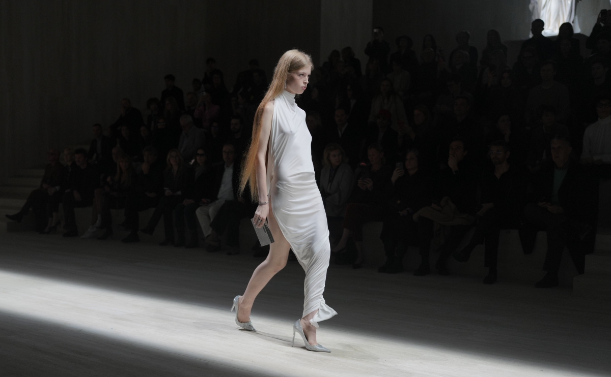 O desfile mostrou silhuetas mais estruturadas, clima sóbrio e produções com peso dramático. Não houve uma ruptura brusca com o passado da casa, mas também ficou claro que Demna não veio para repetir fórmulas. É um primeiro capítulo que ainda está se abrindo.