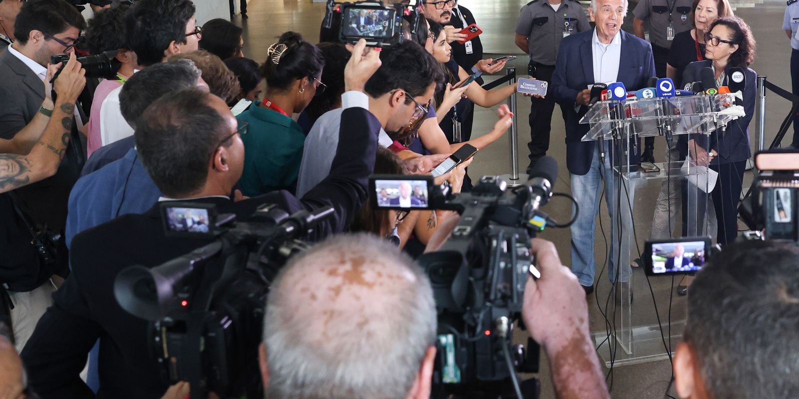 Brasília (DF), 03/01/2026 – Ministro da defesa, José Múcio, (e) embaixadora, Maria Laura (c) e a secretária executiva da casa civil, Miriam Belchior (d), durante entrevista falam da invasão americana na Venezuela. Foto: Valter Campanato/Agência Brasil