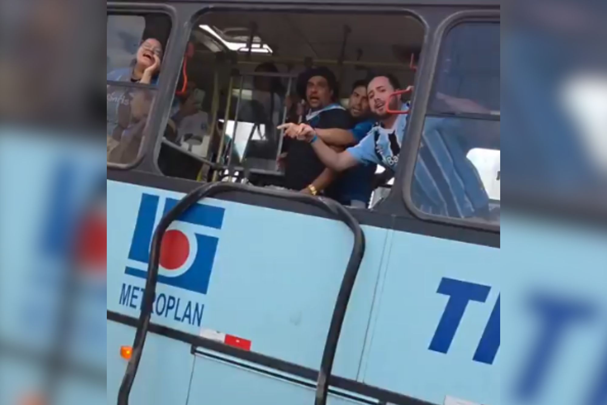 O ônibus com torcedores gremistas chegava ao local e foi atingido por pedras e outros objetos. Nas imagens, é possível ver um dos torcedores com sangramento.