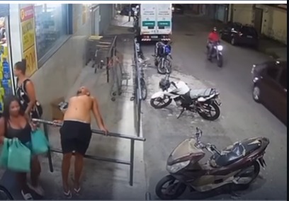 Um homem sofreu uma queda após perder o equilíbrio enquanto se espreguiçava encostado em um corrimão, em frente a um supermercado. O acidente foi registrado por uma câmera de segurança…