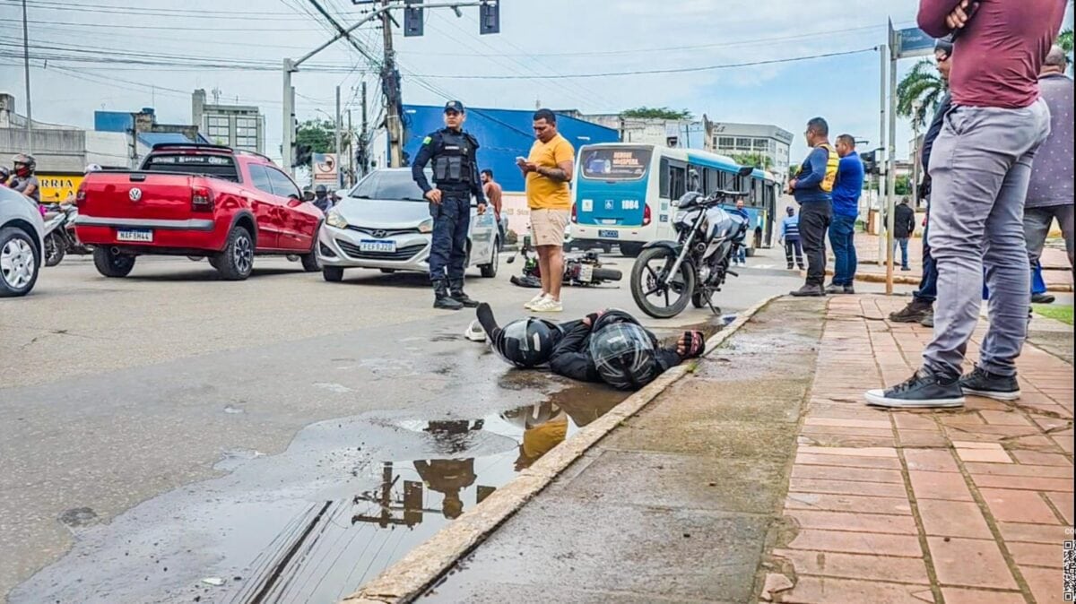 Um acidente entre um automóvel HB20 e uma motocicleta deixou um ferido na manhã desta quarta-feira (25), na Avenida Ceará, trecho que desce do estádio José de Melo até o terminal urbano, em Rio Branco. O motociclista identificado como Charles Silva de Freitas Júnior foi arremessado a cerca de 30 metros do ponto da colisão.