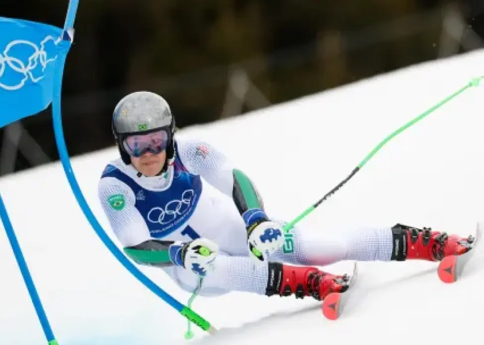 O brasileiro Lucas Pinheiro Braathen liderou a primeira descida no slalom gigante masculino — prova do esqui alpino…