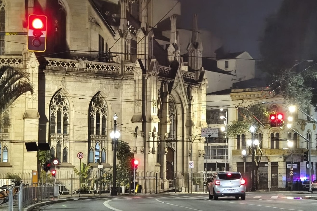 Imagem mostra sinal vermelho à noite - Metrópoles