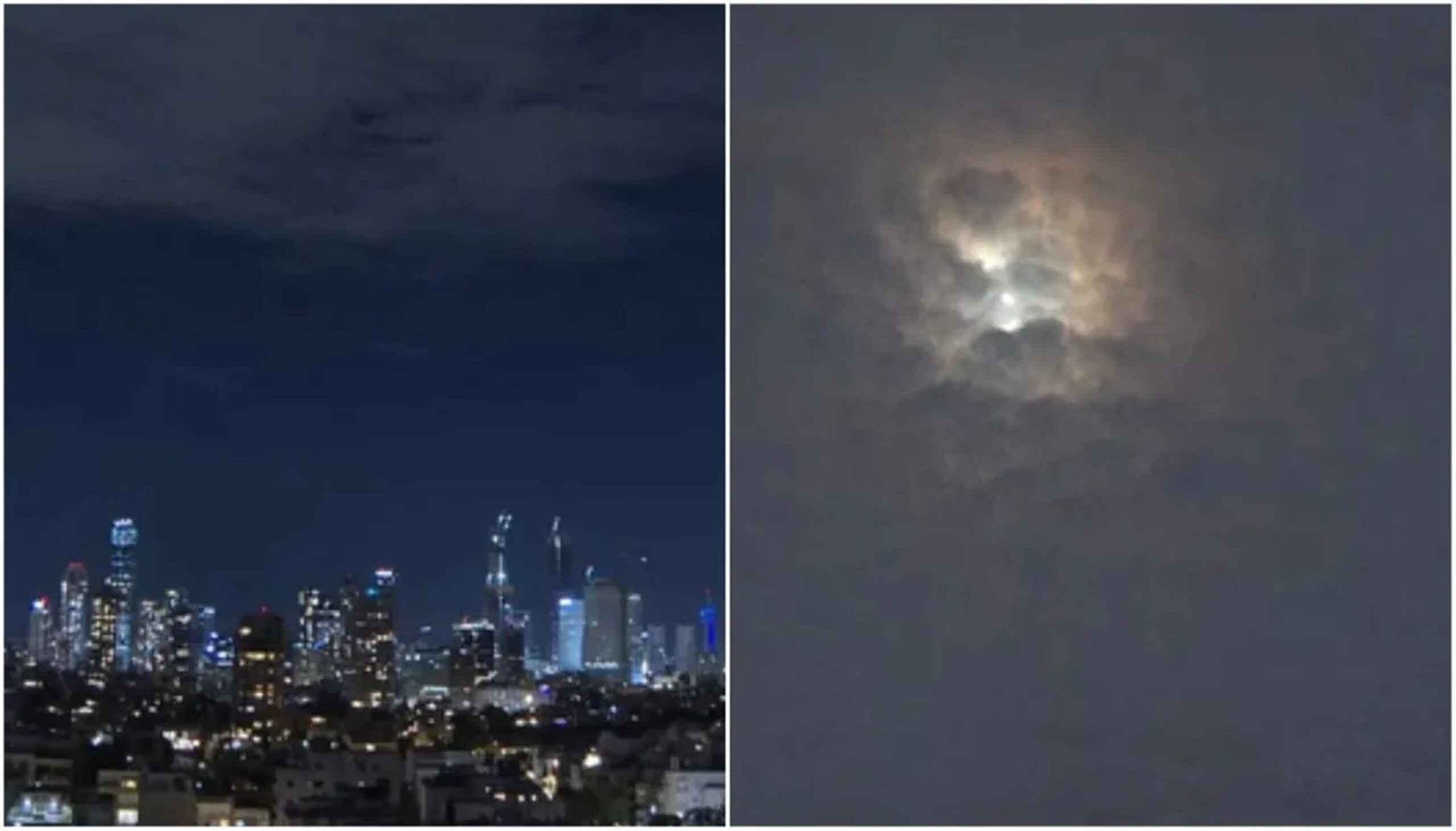 Pelo menos um dos mísseis aparentemente atravessou o sistema de defesa aérea israelense e atingiu a região, provocando uma grande explosão e lançando uma espessa nuvem escura no céu.