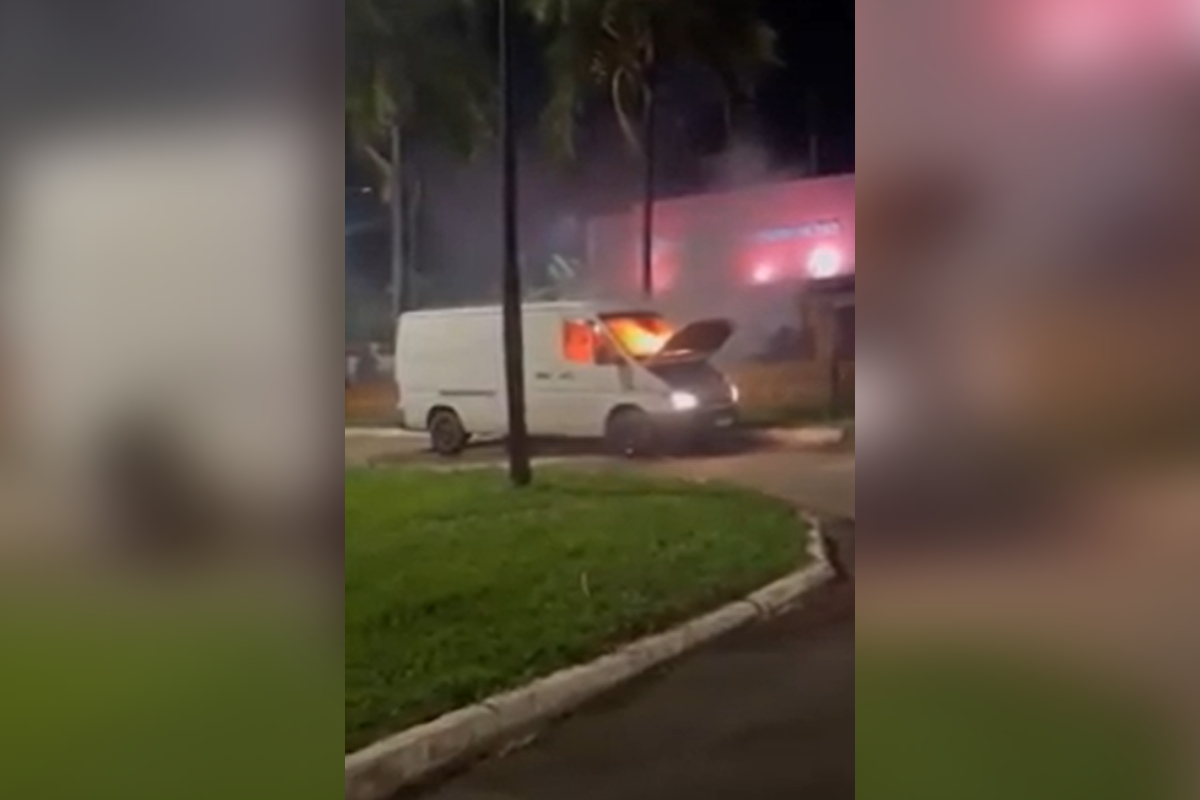 Um motorista levou uma van em chamas até o quartel do Corpo de Bombeiros Militar do Distrito Federal (CBMDF), em São Sebastião, na noite desta quarta-feira (25/3).