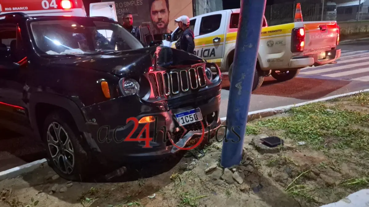Mulher fica ferida ao colidir carro contra poste em Rio Branco