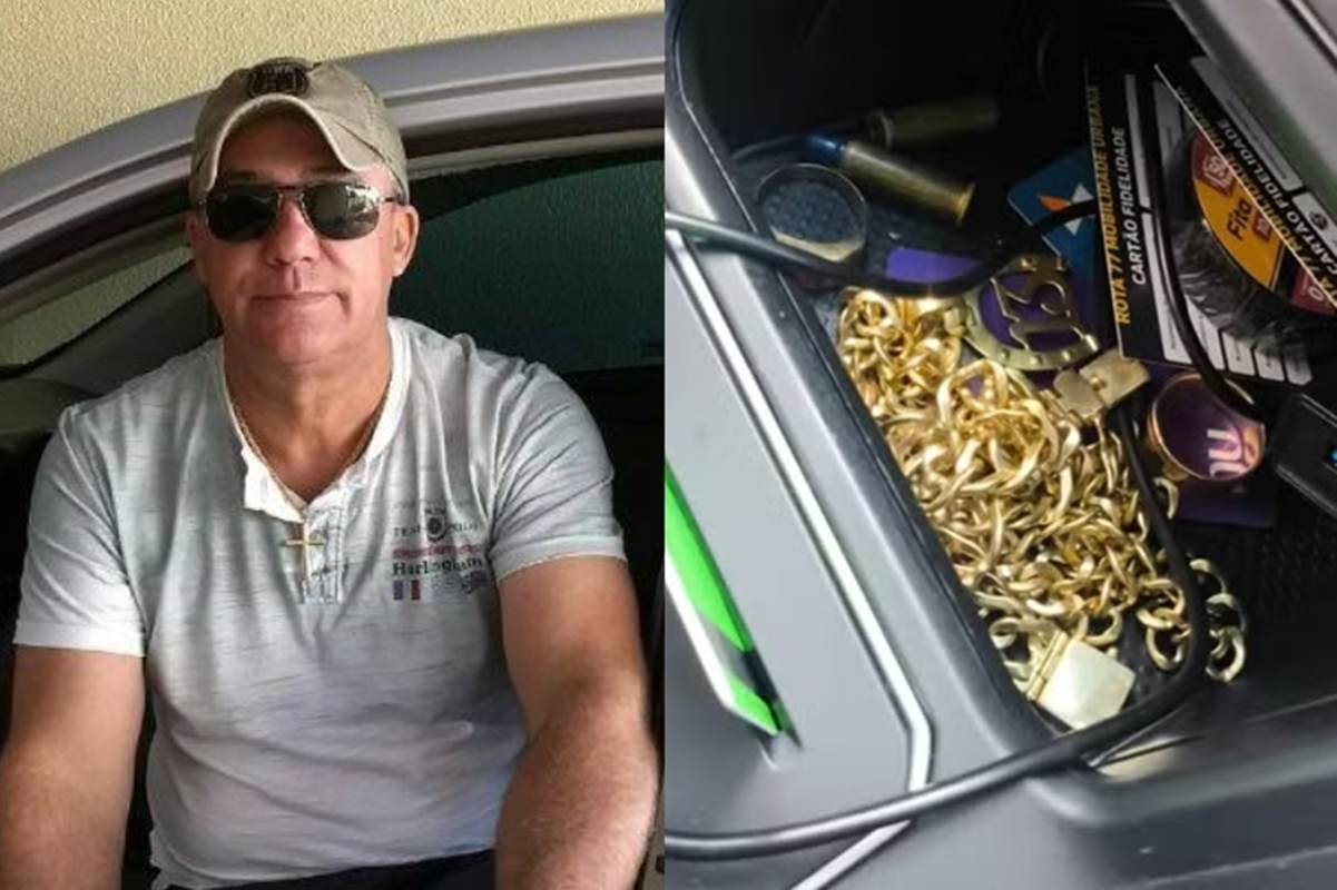 No carro, foram encontrados cerca de 184 gramas de ouro, além de dois celulares.