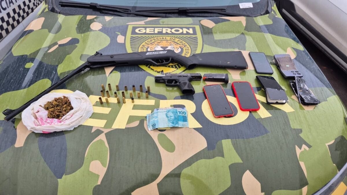 No local, os policiais apreenderam uma pistola, uma espingarda adaptada para calibre .22 e grande quantidade de munições de diferentes calibres. Aparelhos celulares também foram recolhidos, embora parte dos suspeitos tenha tentado destruir os dispositivos durante a abordagem para eliminar provas.