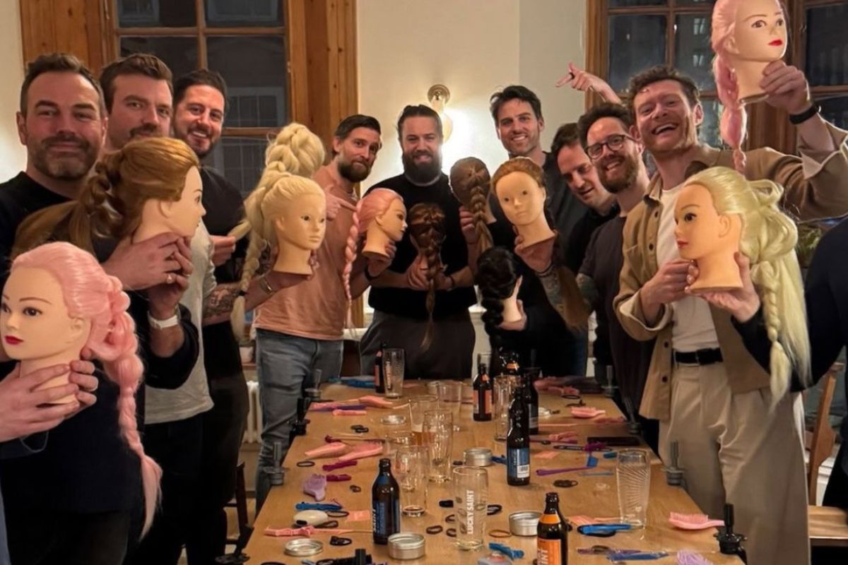 @thesecretlifeofdads 35 dads in a pub, learning to braid their daughters hair. This was truly special – if you’d like to get first access to the next one please follow the link on our page ❤️ #pintsandponytails#dads#dadsoftiktok♬ Aperture – Harry Styles