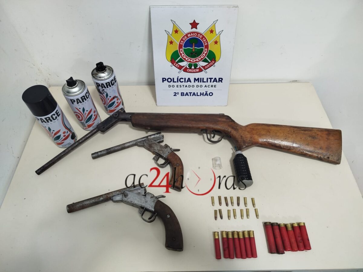 O armamento, as munições e a granada foram encaminhados à Delegacia da 2ª Regional de Rio Branco, onde o material foi apresentado à autoridade policial para os procedimentos legais.