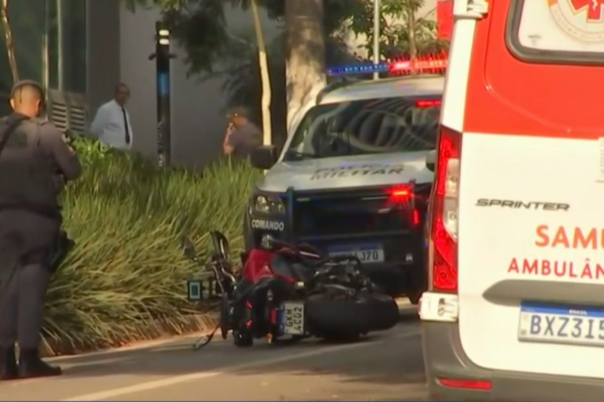 Segundo ela, o casal caiu da moto durante a abordagem. A esposa tentou fugir, enquanto Celso ficou próximo do veículo e do criminoso, que tentou levantar a motocicleta.