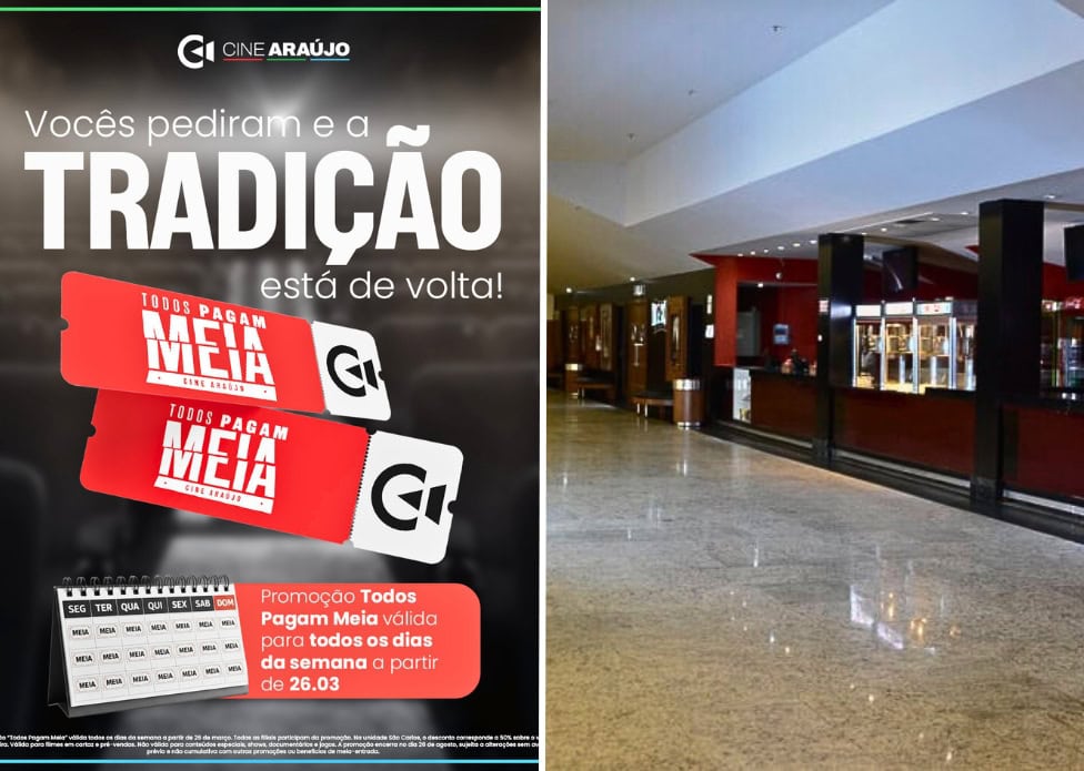 O Cine Araújo anunciou por meio das redes sociais, o retorno da promoção “Todos Pagam Meia”, que garante ingresso com valor reduzido para todos os clientes. A ação começa a partir da quarta-feira (26).