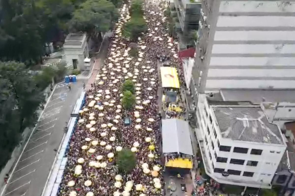 Imagens feitas pela Polícia Militar de São Paulo (PMSP) mostram milhares de foliões para curtir o evento. O artista escocês é a atração principal do Bloco Skol, que marca o retorno do músico ao Brasil após um hiato de 11 anos.