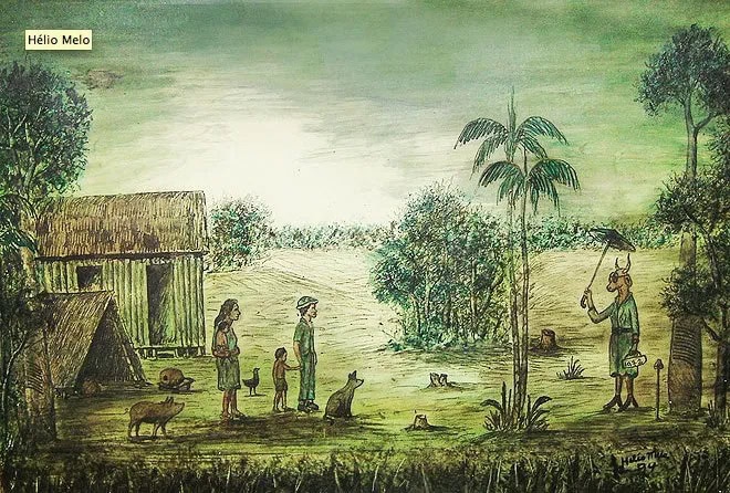 Simples como a natureza é, Seu Hélio era. Pintava com tintas extraídas das plantas da mata que ele conhecia bem. Simples como a vida é, ele era. Seu Hélio é a própria natureza. Hélio Melo é simplesmente magnífico. Numa conversa de botequim, depois de sairmos de uma vernissage do também artista plástico, Danilo de S’Acre, me presenteou com um cartão, pintado por ele mesmo e confirmou, com detalhes o que o Ivan havia me contado à boca larga.