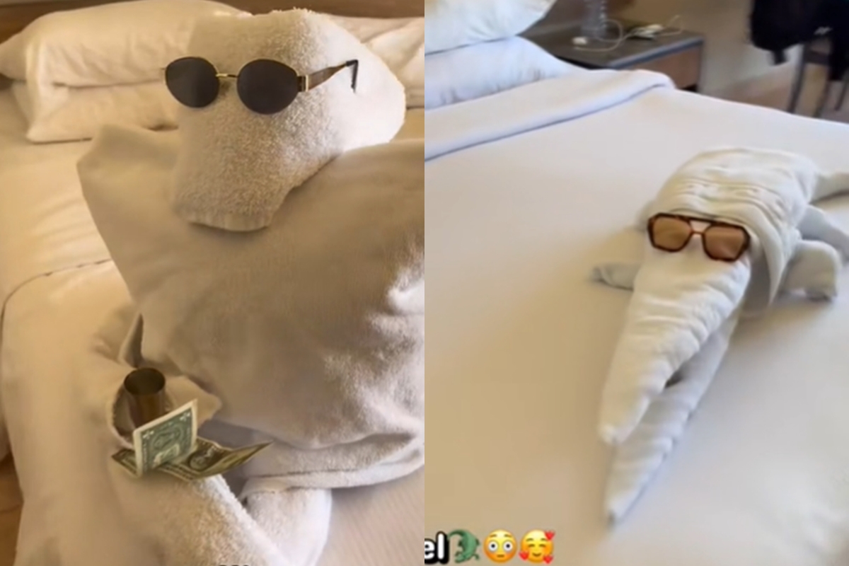 Uma viagem comum acabou virando um verdadeiro espetáculo de criatividade depois que uma turista decidiu entrar na brincadeira com a equipe de limpeza de um hotel — e acabou viralizando nas redes sociais.