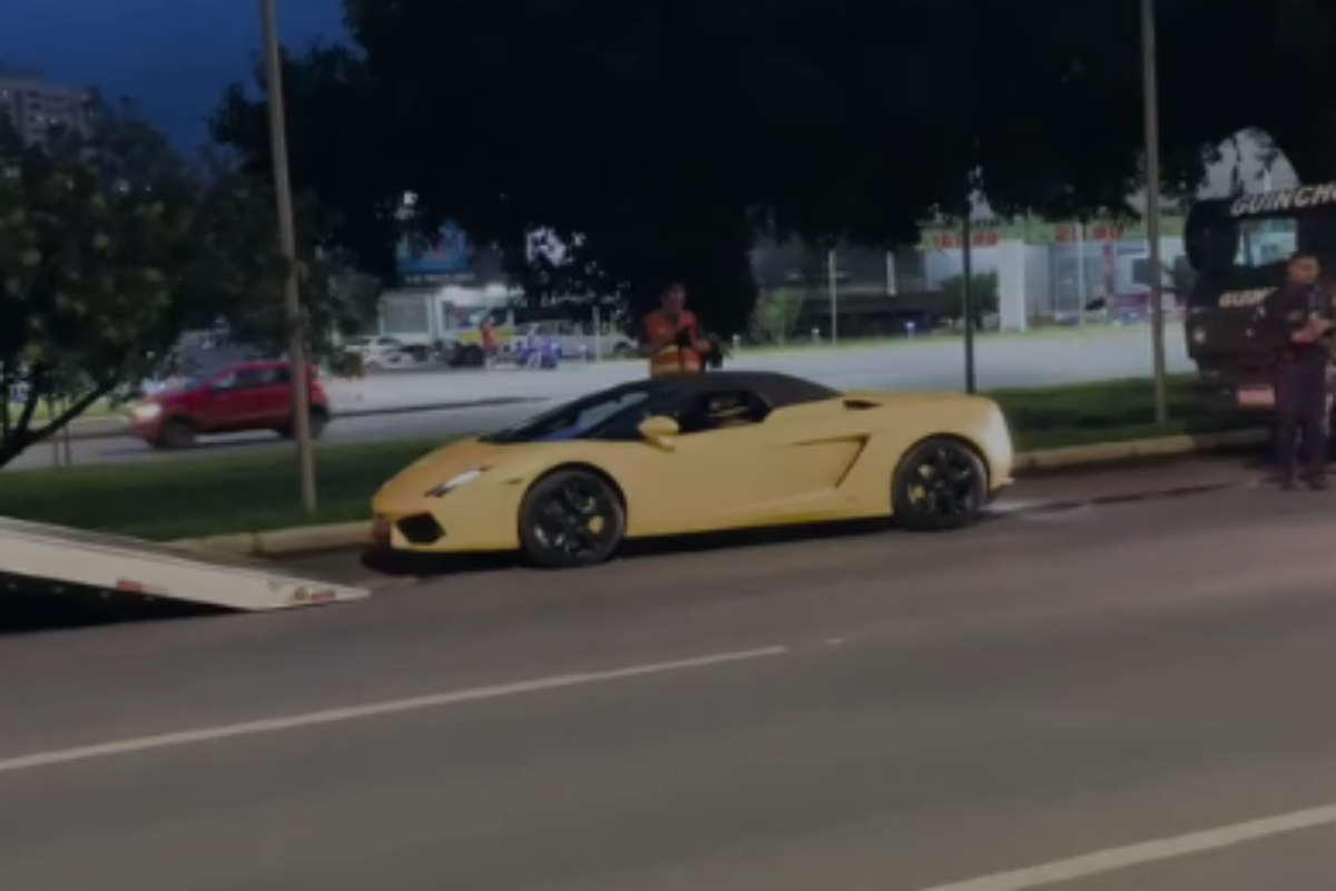 Uma Lamborghini foi apreendida em uma blitz, na quarta-feira (11/3), pela Polícia Militar do Distrito Federal (PMDF), em Taguatinga, no Distrito Federal.